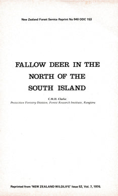 Fallow Deer In The North Of The South Island | C.M.H Clarke | Reprint 1976
